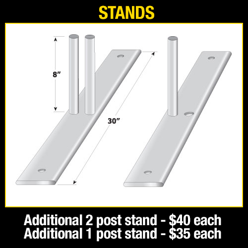The aluminium frame is welded 1.25” square tubing, and is fitted with a 2 sided, durable, washable, changable fabric banner that fits each frame like a pillow case.